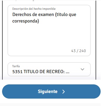 En “Descripcion del hecho imponible” volveis a escribir lo mismo “Derechos de examen PNB/PER/PY/CY (el titulo al que os vayais a presentar)”